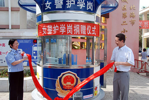 近日,市公安局交警支隊女警護(hù)衛(wèi)崗捐贈儀式在海城區(qū)二小門前舉行。北海景光電子有限公司向交警支隊捐贈了兩個女警護(hù)衛(wèi)崗?fù)ぃ瑑r值達(dá)4.6萬元,用實際行動支持百萬學(xué)生文明交通暨“護(hù)衛(wèi)天使行動”創(chuàng)建工作。據(jù)了解,目前全市共有三個護(hù)學(xué)崗,其中女警護(hù)學(xué)崗兩個,在每天學(xué)生上學(xué)放學(xué)的高峰期,在校門口路段指揮疏導(dǎo)交通,引導(dǎo)護(hù)送學(xué)生安全有序地橫過道路,確保校園周邊道路交通秩序井然。