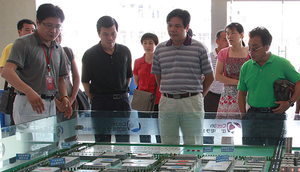 劉慶強(qiáng)局長一行在展廳聽取了園區(qū)發(fā)展情況的介紹,并參觀了長城能源及國鈺電子生產(chǎn)車間,詳細(xì)了解了企業(yè)生產(chǎn)工藝和市場開拓等情況。在北部灣電子信息科技企業(yè)孵化器,劉局長一行饒有興致地參觀了孵化器企業(yè)展品,并與企業(yè)的員工親切交談,了解企業(yè)在孵化器的發(fā)展情況。劉局長表示中電北海產(chǎn)業(yè)園、北海市科技局共同打造孵化器,所取得的先進(jìn)經(jīng)驗(yàn)值得學(xué)習(xí)研究,兩市的科技部門要加強(qiáng)溝通,互相借鑒提高。