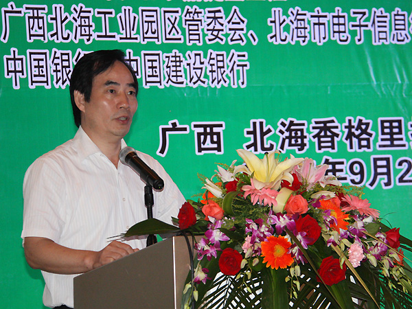 廣西北海工業(yè)園區(qū)管理委員會主任朱會東、北京嘉捷集團(tuán)董事長李佰龍、北海嘉信高總經(jīng)理丁濤、北京經(jīng)濟(jì)技術(shù)開發(fā)區(qū)原副主任李銘以及北京浩瀚深度信息技術(shù)股份有限公司副總裁魏強(qiáng)等分別作了主題演講。