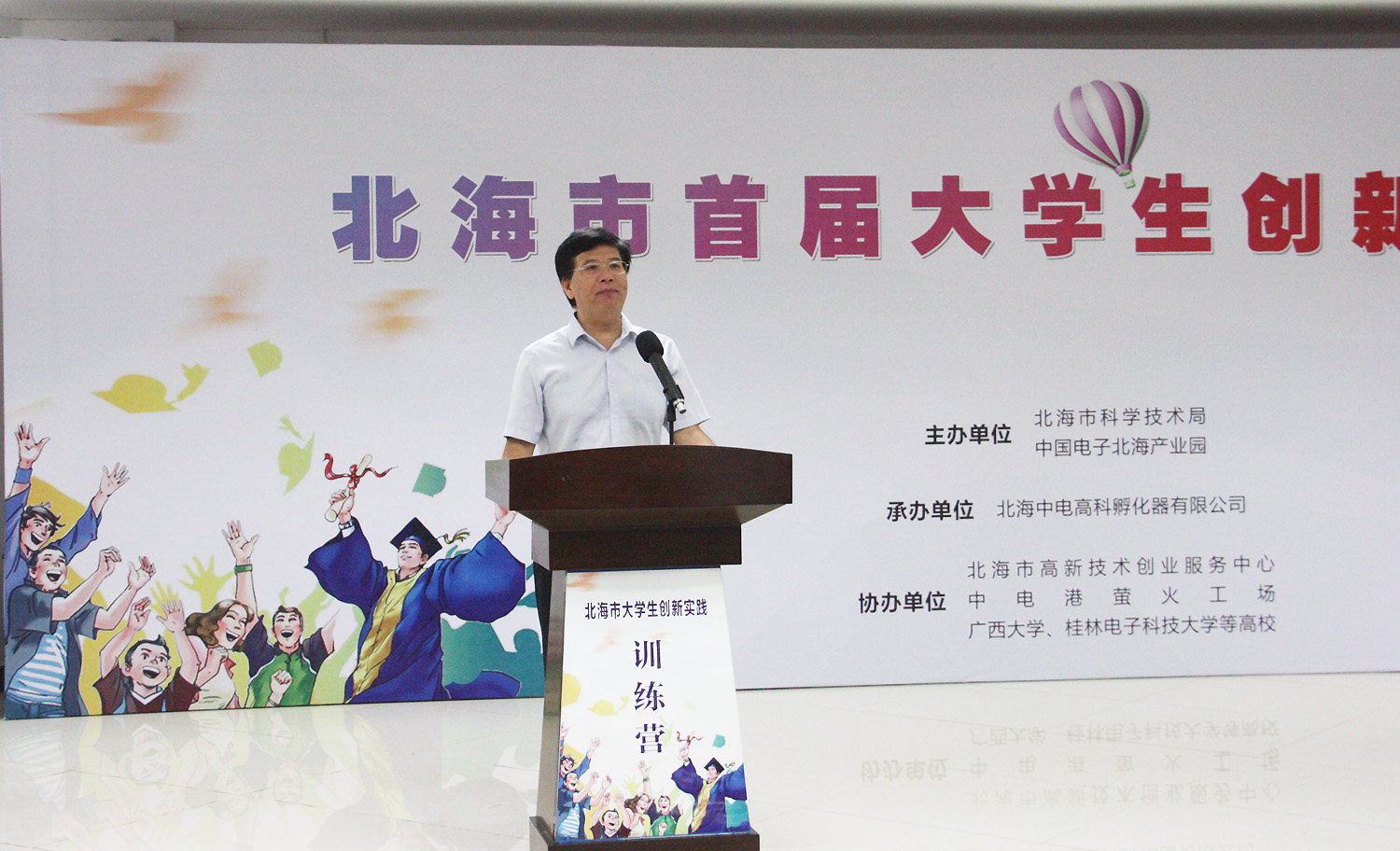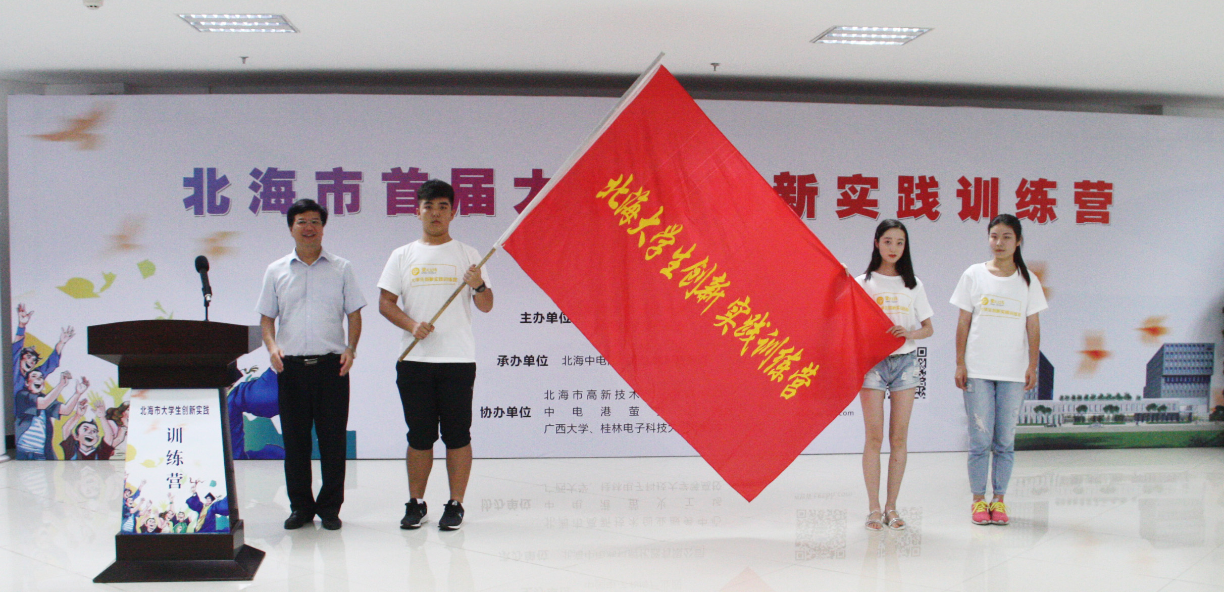 2017年8月15日,北海市首屆大學(xué)生創(chuàng)新實踐訓(xùn)練營在中國電子北海產(chǎn)業(yè)園舉行開營儀式,北海市常務(wù)副市長陳維出席了開幕式,并宣布訓(xùn)練營開營。