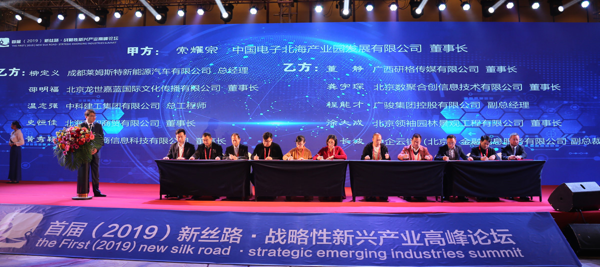 2019年1月10日,以“創(chuàng)新引領(lǐng)戰(zhàn)略性新興產(chǎn)業(yè)”為主題的首屆(2019)新絲路·戰(zhàn)略性新興產(chǎn)業(yè)高峰論壇在北海舉行。外貿(mào)部原副部長(zhǎng)周可仁、市長(zhǎng)蔡錦軍、中電北海產(chǎn)業(yè)園公司董事長(zhǎng)索耀宗出席論壇并致辭。有關(guān)國(guó)家部委領(lǐng)導(dǎo)、院士專家、行業(yè)組織的代表,新一代信息技術(shù)、智能制造、大健康、影視文化等國(guó)內(nèi)外企業(yè)家以及金融投資機(jī)構(gòu)負(fù)責(zé)人、媒體機(jī)構(gòu)代表、科研院所代表500多人參加了此次盛會(huì)。