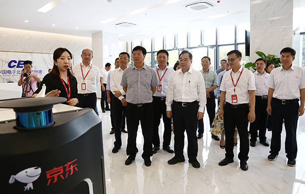2019年9月25日下午,自治區(qū)黨委常委、常務(wù)副主席秦如培率全區(qū)新興服務(wù)業(yè)發(fā)展現(xiàn)場推進(jìn)會與會人員,在北海市市長蔡錦軍的陪同下赴中國電子北部灣信息港考察,深入凡普金科、京東云企業(yè),調(diào)研園區(qū)軟件與信息服務(wù)業(yè)、數(shù)字經(jīng)濟(jì)發(fā)展情況。