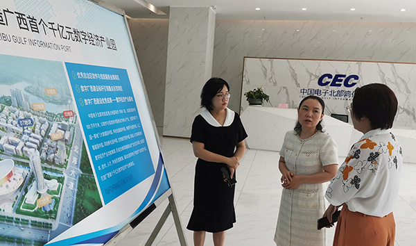 2023年7月19日上午,北海市市委常委、市紀委書記劉纓帶隊到中國電子北部灣信息港開展“壯大實體經(jīng)濟推動高質量發(fā)展”調研。中國電子北海產(chǎn)業(yè)園發(fā)展有限公司副總經(jīng)理劉曉娟現(xiàn)場向劉纓書記匯報了信息港項目建設、運營情況。